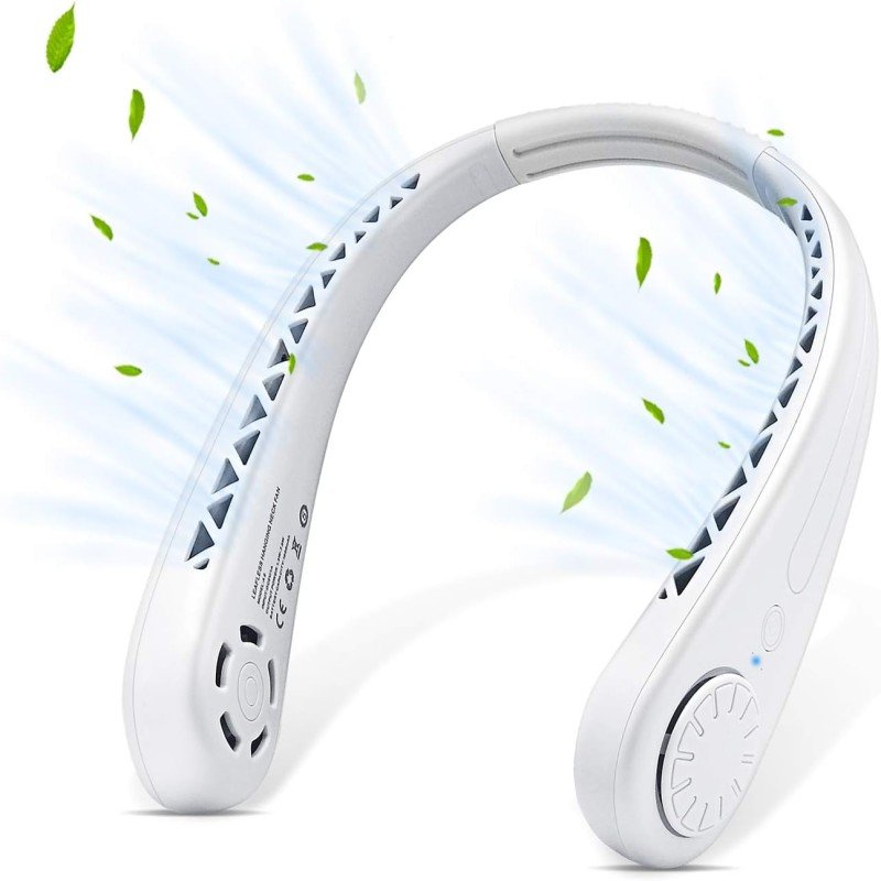 - ❄️【Lightweight & Portable Design】The compact style neck fan hanging on the neck makes you look so cool, and the lightweight design helps you put less strain on the neck. If you are sitting at your desk working, on a lounger by a pool, on a chair in the garden, or even just going for a stroll, this little item will give your neck and head a good blast of refreshing air to keep you from melting.